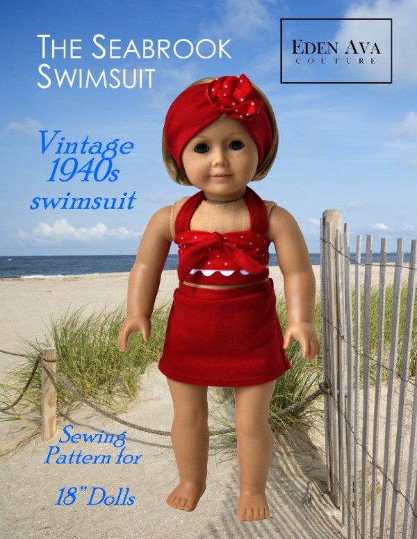 Download! Print! & Sew this adorable 1940s Vintage Swimsuit for your American Girl doll today!  This pattern is available for purchase at Liberty Jane Patterns!