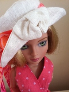 I started pulling different fabrics and textures together from my “stash”. I used 100%cotton for the dress. The hat and jacket are white linen, and the sash on the hat is made from a bright and colorful chiffon. Everything that can be lined is lined.